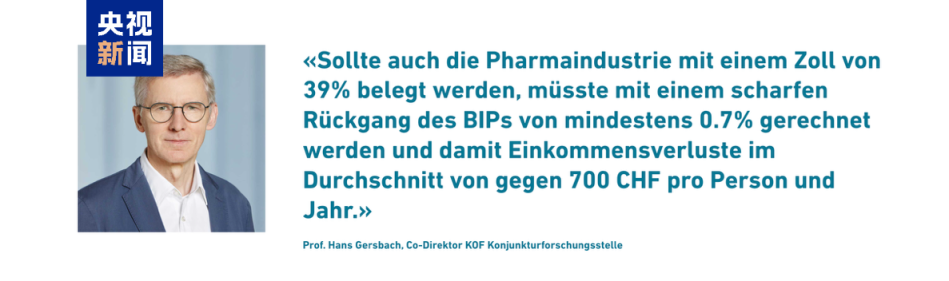 △苏黎世联邦理工大学教授汉斯·格斯巴赫发文称,如果制药行业也面临39%的关税,那么GDP将大幅下降至少0.7%,导致每人每年平均收入损失约700瑞士法郎。