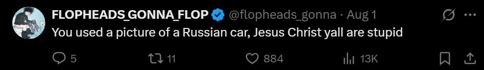 报道称,然而,网友们很快注意到海报中这辆车“不是美国制造的”。在共和党这一帖子评论区,有人表示,“这张图片中的汽车是俄罗斯/苏联制造的VAZ 2101(拉达汽车),白痴。”“你们用了一张俄罗斯汽车的照片,天啊,你们真蠢。”↓